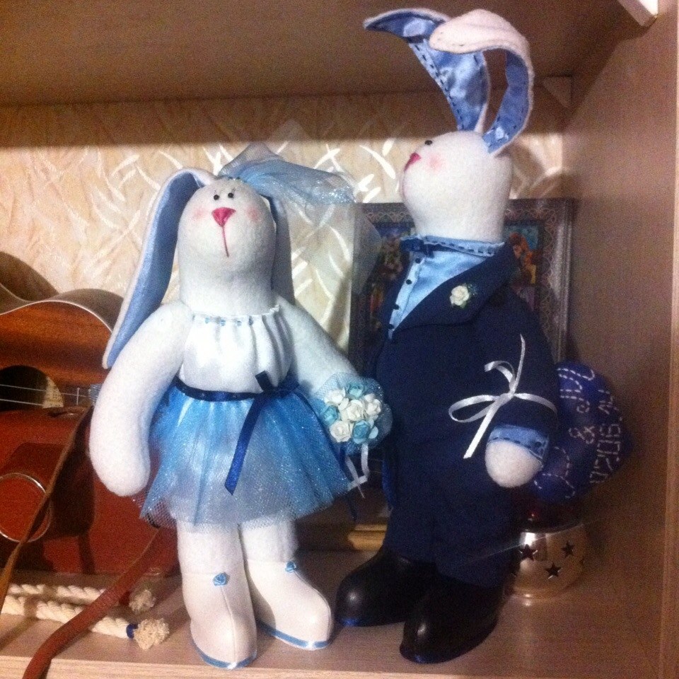Счастливая пара зайцев из фетра