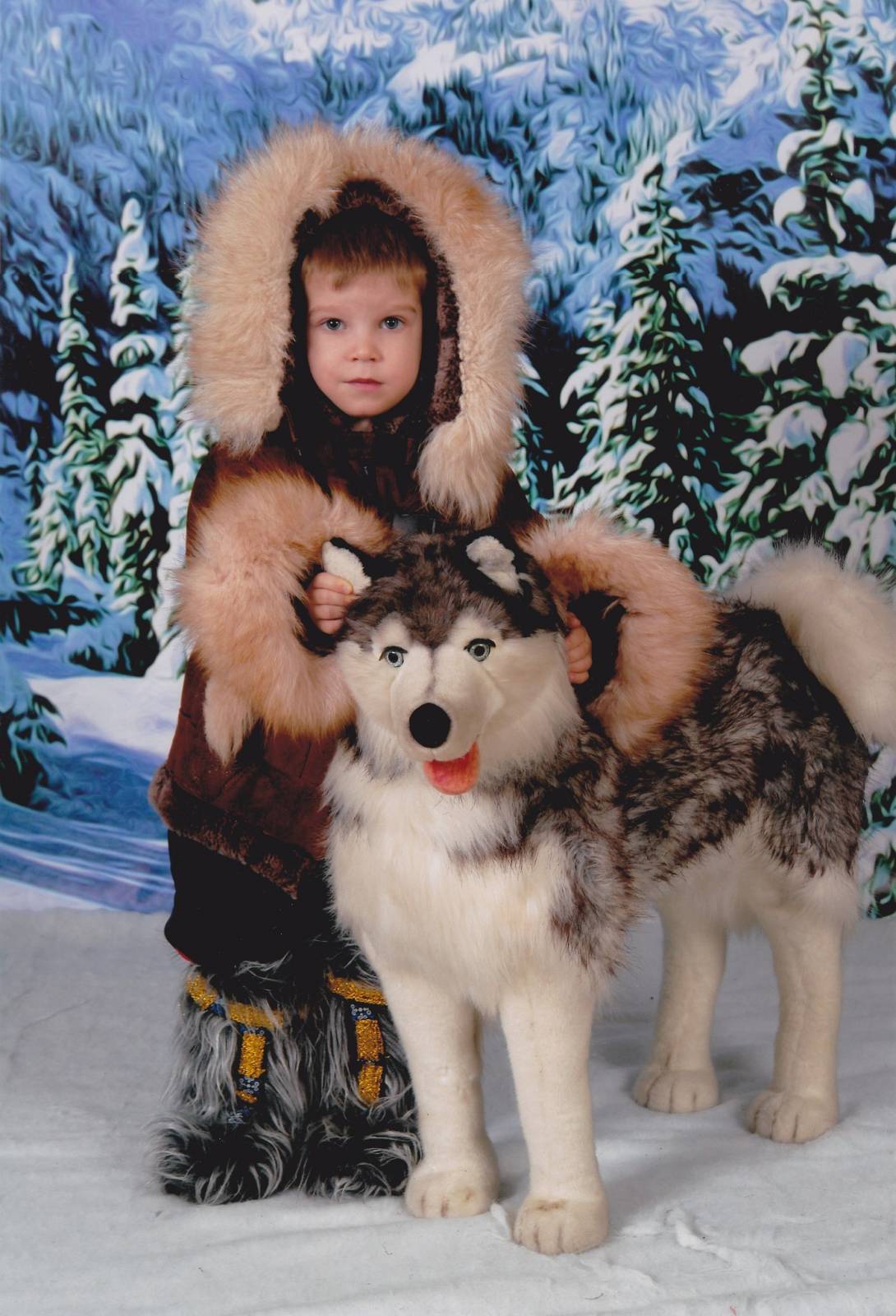 Тёмочка и игрушечная хаски :) В садике этого пса все детки приняли на ура, он ведь и вправду очень похож на настоящего!